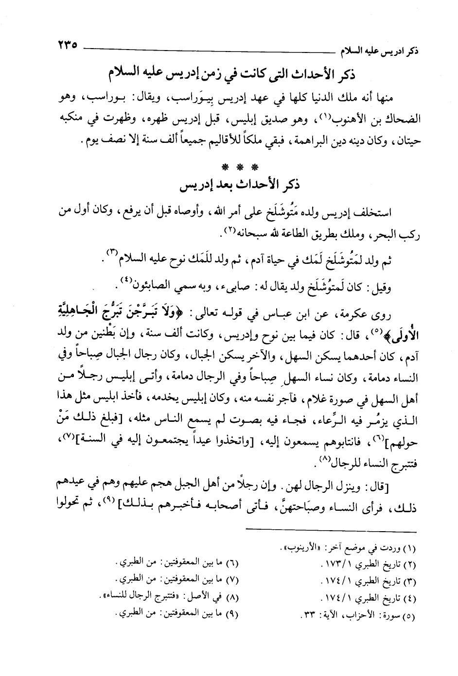 ذكر الأحداث الَّتِي كانت فِي زمن إدريس عَلَيْهِ السَّلام