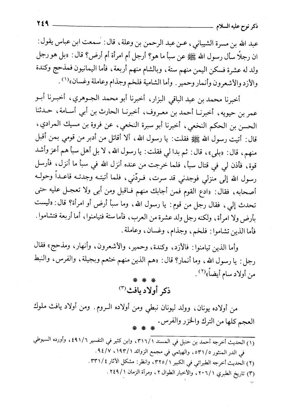 من أولاده يونان، وولد ليونان نبطي ومن أولاده الروم. ومن أولاد يافث ملوك العجم كُلّهَا من الترك والخزر والفرس.
