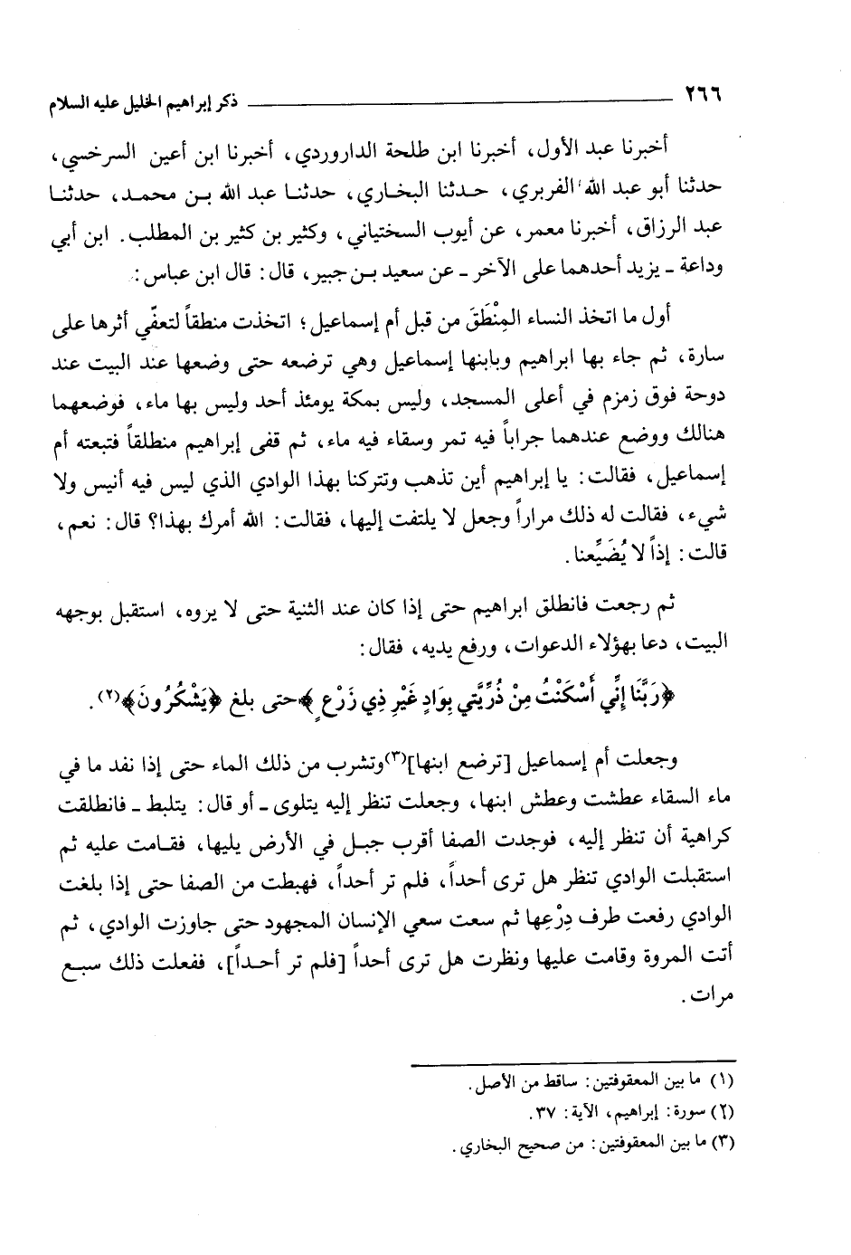 رَبَّنا إِنِّي أَسْكَنْتُ مِنْ ذُرِّيَّتِي بِوادٍ غَيْرِ ذِي زَرْعٍ 14: 37 حتى بلغ يَشْكُرُونَ 14: 37 [1] .