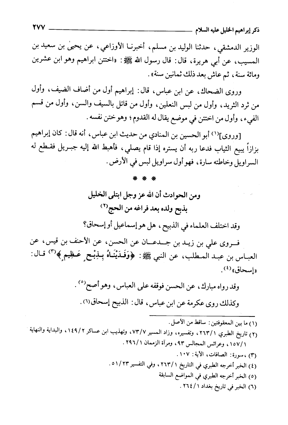 [2] تاريخ الطبري 1/ 263، وتفسيره، وزاد المسير 7/ 73، وتهذيب ابن عساكر 2/ 149، والبداية والنهاية 1/ 157، وعرائس المجالس 93، ومرآة الزمان 1/ 296.