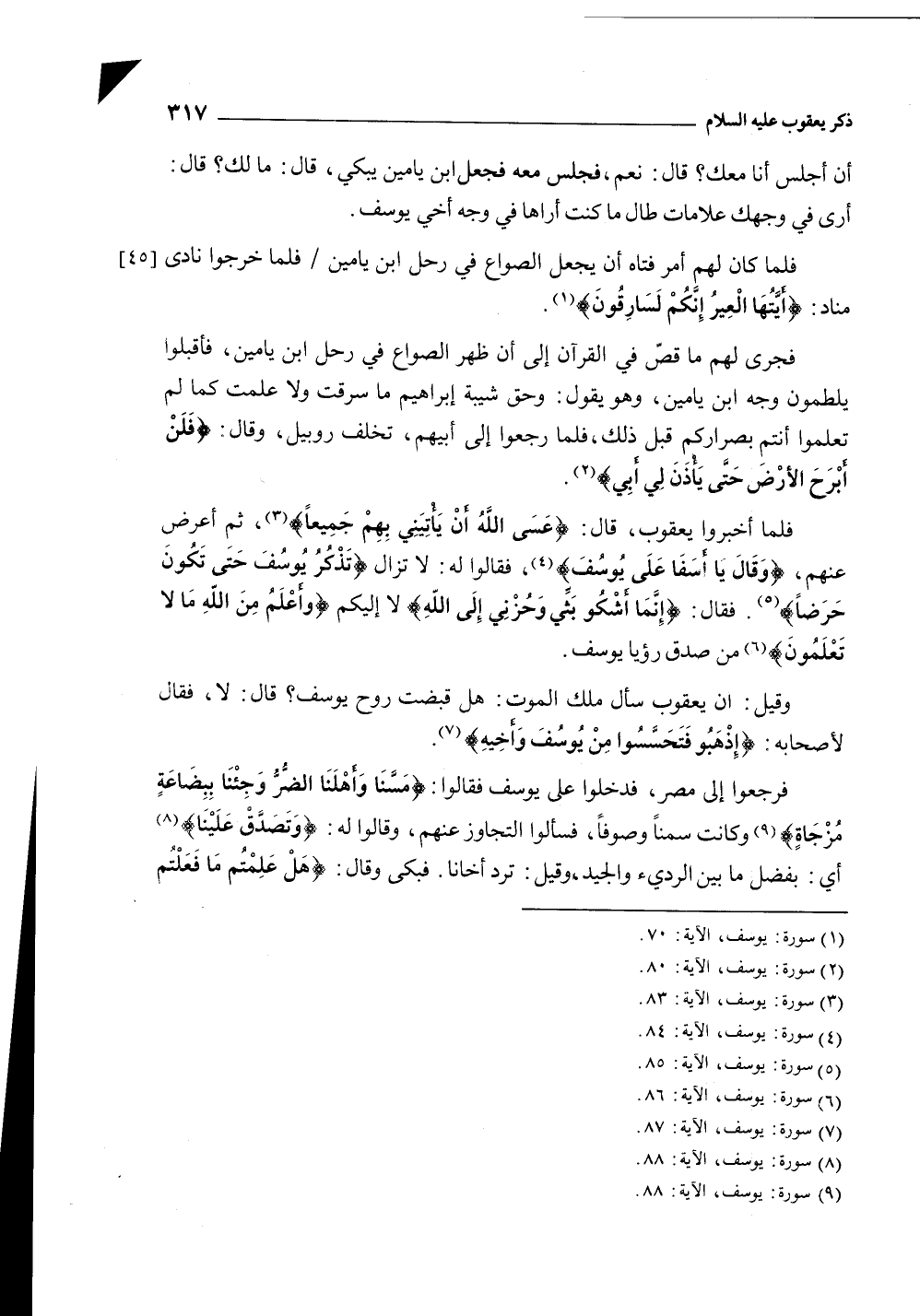 فلما أخبروا يعقوب، قَالَ: عَسَى اللَّهُ أَنْ يَأْتِيَنِي بِهِمْ جَمِيعاً 12: 83 [3] ، ثُمَّ أعرض عَنْهُم، وَقال يَا أَسَفى عَلى يُوسُفَ 12: 84 [4] ، فَقَالُوا لَهُ: لا تزال تَذْكُرُ يُوسُفَ حَتَّى تَكُونَ حَرَضاً 12: 85 [5] . فقال: إِنَّما أَشْكُوا بَثِّي وَحُزْنِي إِلَى الله 12: 86 لا إليكم وَأَعْلَمُ مِنَ اللَّهِ مَا لا تَعْلَمُونَ 12: 86 [6] من صدق رؤيا يُوسُف.