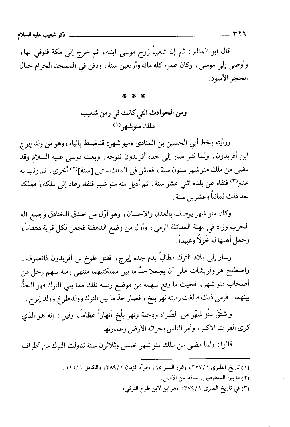 ومن الحوادث الَّتِي كانت فِي زمن شُعَيْب ملك منوشهر [1]