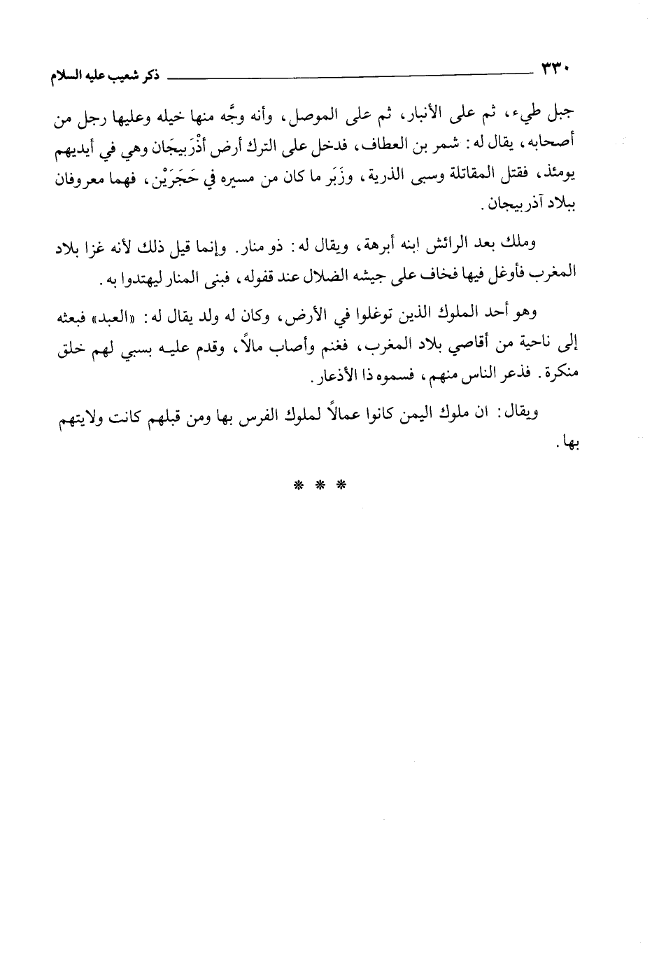 جبل طيِّئ، ثُمَّ عَلَى الأنبار، ثُمَّ عَلَى الموصل، وأنه وجه منها خيله وعليها رجل من أَصْحَابه، يُقَال لَهُ: شمر بْن العطاف، فدخل عَلَى الترك أرض أذربيجان وَهِيَ فِي أيديهم يَوْمَئِذٍ، فقتل المقاتلة وسبى الذرية، وزبر مَا كَانَ من مسيره فِي حجرين، فهما معروفان ببلاد آذربيجان.
