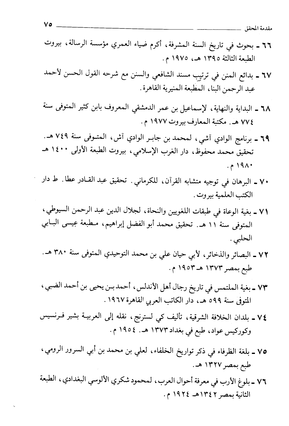 71- بغية الوعاة في طبقات اللغويين والنحاة، لجلال الدين عبد الرحمن السيوطي، المتوفى سنة 11 هـ. تحقيق محمد أبو الفضل إبراهيم، مطبعة عيسى البابي الحلبي.