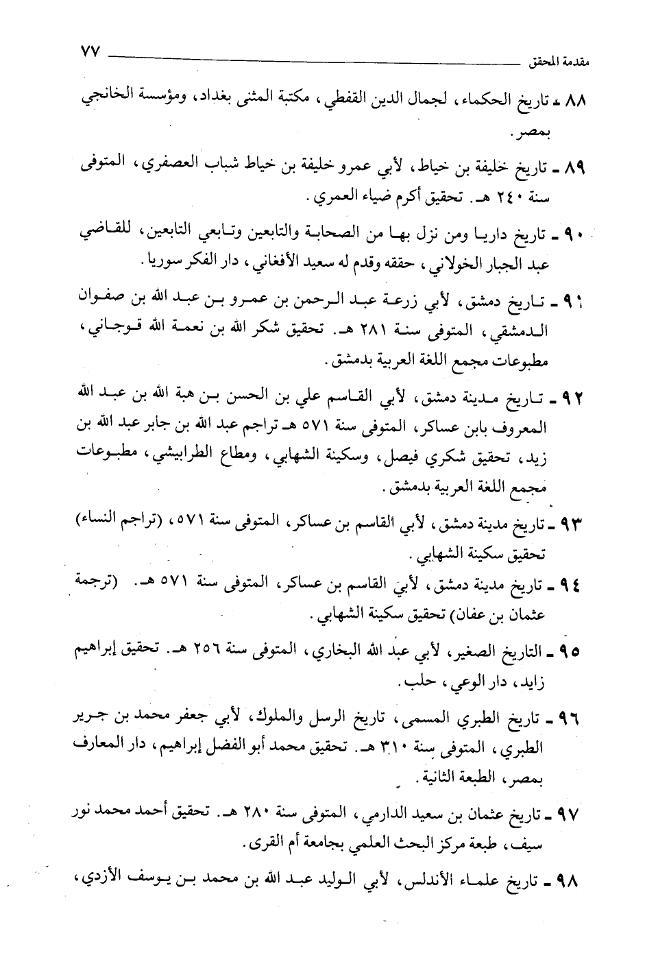 88- تاريخ الحكماء، لجمال الدين القفطي، مكتبة المثنى بغداد، ومؤسسة الخانجي بمصر.