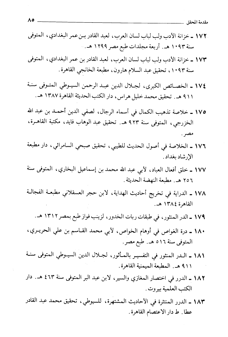 173- خزانة الأدب ولب لباب لسان العرب، لعبد القادر بن عمر البغدادي، المتوفى سنة 1093، تحقيق عبد السلام هارون، مطبعة الخانجي القاهرة.