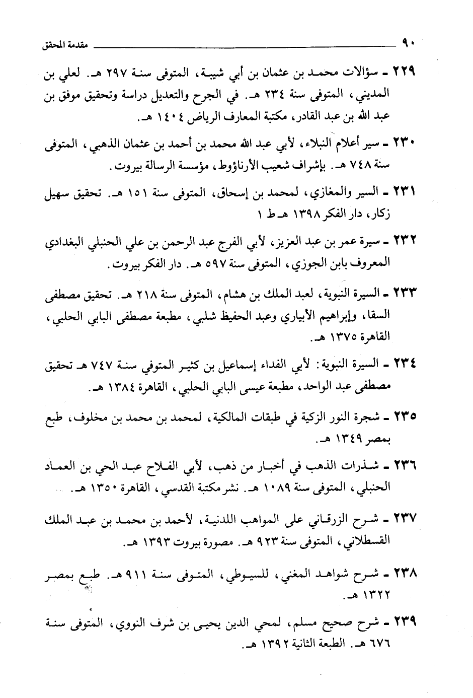 233- السيرة النبويّة، لعبد الملك بن هشام، المتوفى سنة 218 هـ. تحقيق مصطفى السقا، وإبراهيم الأبياري وعبد الحفيظ شلبي، مطبعة مصطفى البابي الحلبي، القاهرة 1375 هـ.