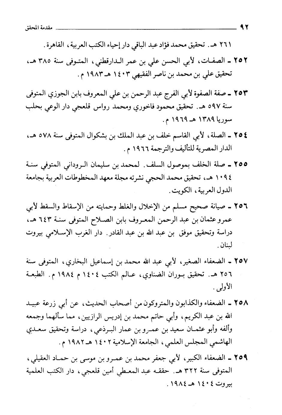 258- الضعفاء والكذابون والمتروكون من أصحاب الحديث، عن أبي زرعة عبيد الله بن عبد الكريم، وأبي حاتم محمد بن إدريس الرازيين، مما سألهما وجمعه وألفه وأبو عثمان سعيد بن عمرو بن عمار البرذعي، دراسة وتحقيق سعدي الهاشمي المجلس العلمي، الجامعة الإسلامية 1402 هـ 1982 م.