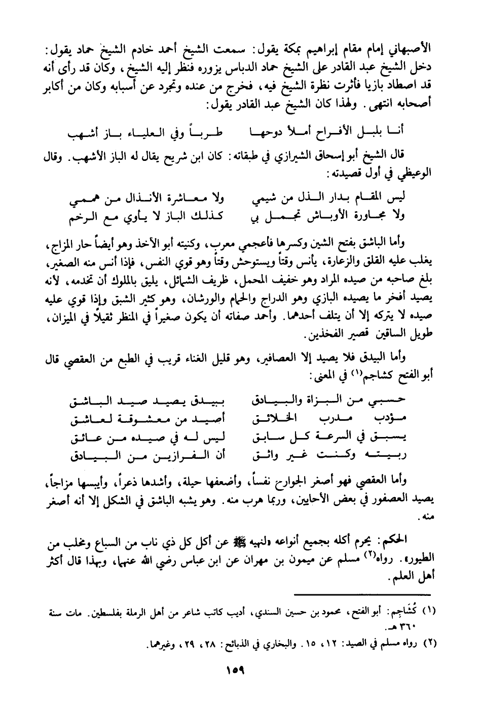 وأما البيدق فلا يصيد إلا العصافير، وهو قليل الغناء قريب في الطبع من العقصي قال أبو الفتح كشاجم «1» في المعنى: