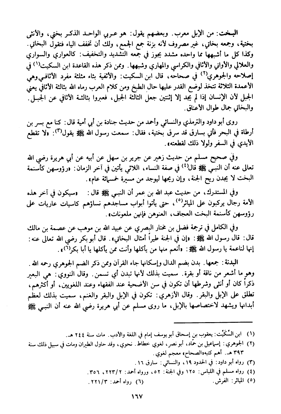 من الإبل معرب. وبعضهم يقول: هو عربي الواحد الذكر بختي، والأنثى بختية، وجمعه بخاتي، غير مصروف لأنه بزنة جمع الجمع، ولك أن تخفف الياء فتقول البخاتي.
