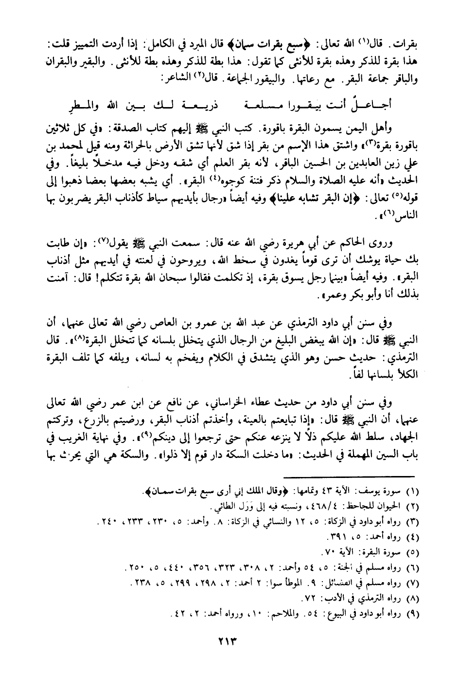 وفي سنن أبي داود الترمذي عن عبد الله بن عمرو بن العاص رضي الله تعالى عنهما، أن النبي صلى الله عليه وسلم قال: «إن الله يبغض البليغ من الرجال الذي يتخلل بلسانه كما تتخلل البقرة «8» » . قال الترمذي: حديث حسن وهو الذي يتشدق في الكلام ويفخم به لسانه، ويلفه كما تلف البقرة الكلأ بلسانها لفا.