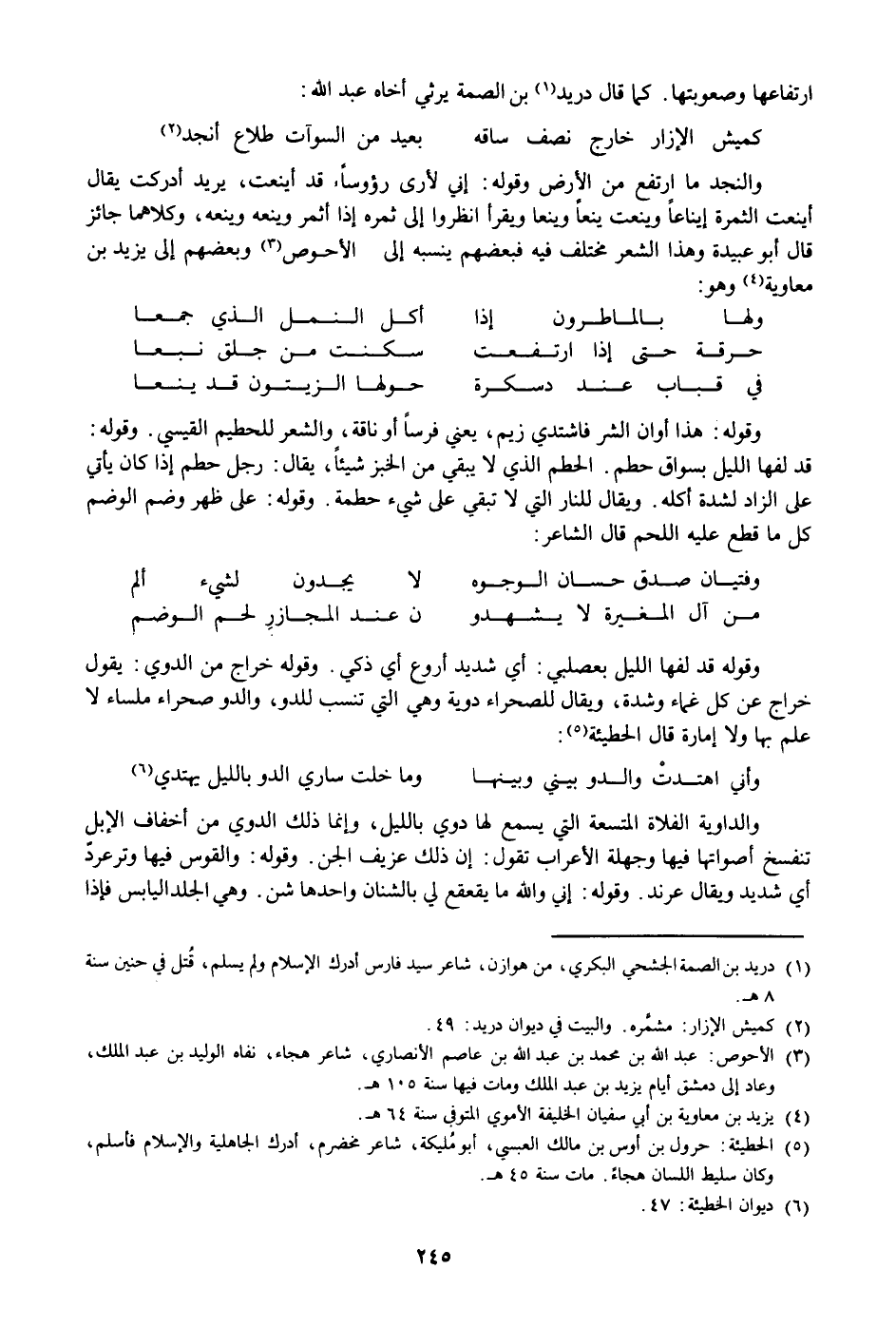 وقوله قد لفها الليل بعصلبي: أي شديد أروع أي ذكي. وقوله خراج من الدوي: يقول خراج عن كل غماء وشدة، ويقال للصحراء دوية وهي التي تنسب للدو، والدو صحراء ملساء لا علم بها ولا إمارة قال الحطيئة «5» :