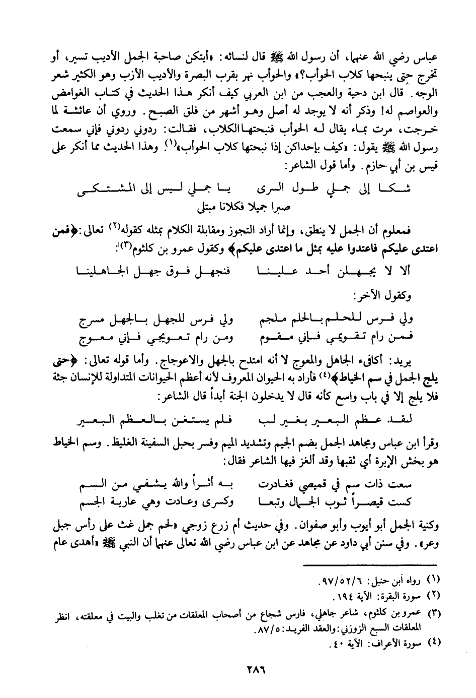 يريد: أكافىء الجاهل والمعوج لا أنه امتدح بالجهل والاعوجاج. وأما قوله تعالى: حَتَّى يَلِجَ الْجَمَلُ فِي سَمِّ الْخِياطِ