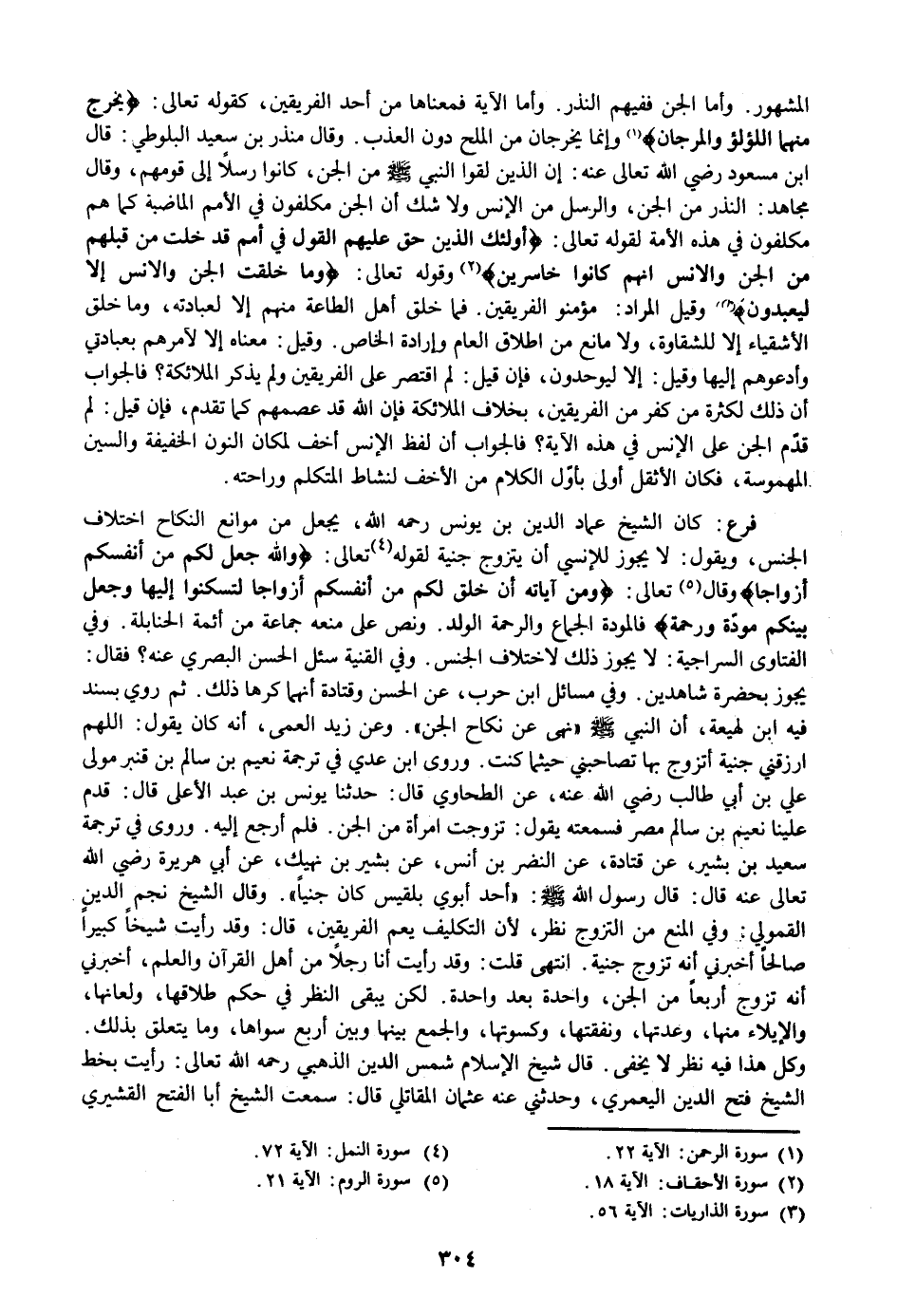 كان الشيخ عماد الدين بن يونس رحمه الله، يجعل من موانع النكاح اختلاف الجنس، ويقول: لا يجوز للإنسي أن يتزوج جنية لقوله «4» تعالى: وَاللَّهُ جَعَلَ لَكُمْ مِنْ أَنْفُسِكُمْ أَزْواجاً