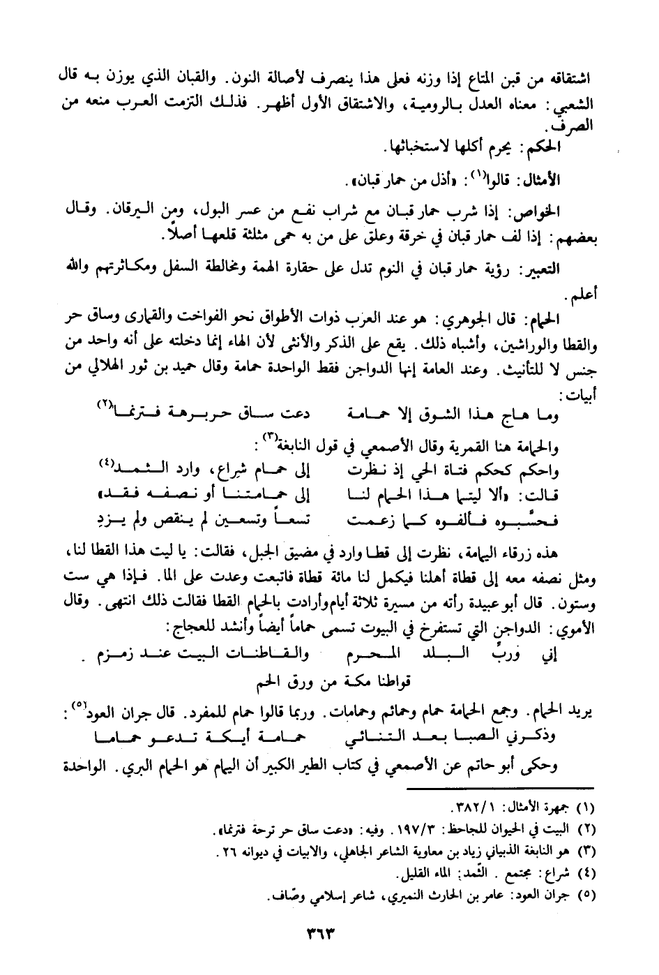 وحكى أبو حاتم عن الأصمعي في كتاب الطير الكبير أن اليمام هو الحمام البري. الواحدة