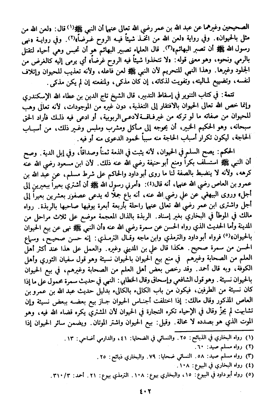 يصح السلم في الحيوان، لأنه يثبت في الذمة ثمنا وصداقا، وفي إبل الدية. وصح أن النبي صلى الله عليه وسلم استسلف بكرا ومنع أبو حنيفة رضي الله عنه ذلك. لأن ابن مسعود رضي الله عنه كرهه، ولأنه لا ينضبط بالصفة لنا ما روى أبو داود والحاكم على شرط مسلم، عن عبد الله بن عمرو بن العاص رضي الله عنهما، أنه قال «4» : «أمرني رسول الله صلى الله عليه وسلم أن أشتري بعيرا ببعيرين إلى أجل» وروى البيهقي عن علي رضي الله عنه، أنه باع جملا له يدعى عصفور بعشرين بعيرا إلى أجل واشترى ابن عمر رضي الله تعالى عنهما راحلة بأربعة أبعرة يوفيها صاحبها بالربذة. رواه مالك في الموطأ في البخاري بغير إسناد. الربذة بالذال المعجمة موضع على ثلاث مراحل من المدينة وأما الحديث الذي رواه الحسن عن سمرة رضي الله عنه «أن النبي صلى الله عليه وسلم نهى عن بيع الحيوان بالحيوان» «5» فرواه أبو داود والترمذي وابن ماجه وقال الترمذي: إنه حسن صحيح، وسماع الحسن من سمرة صحيح. هكذا قال علي بن المديني وغيره. والعمل على هذا عند أكثر أهل العلم من الصحابة وغيرهم في منع بيع الحيوان بالحيوان نسيئة وهو قول سفيان الثوري وأهل الكوفة، وبه قال أحمد. وقد رخص بعض أهل العلم من الصحابة وغيرهم، في بيع الحيوان بالحيوان نسيئة. وهو قول الشافعي وإسحاق وقال الخطابي: النهي في حديث سمرة محمول على ما إذا كان نسيئة من الطرفين، فيكون من باب الكالىء بالكالىء بدليل حديث عبد الله بن عمرو بن العاص المذكور وقال مالك: إذا اختلفت أجناس الحيوان جاز بيع بعضه ببعض نسيئة وإن تشابهت لم يجز وقال في الإحياء تكره التجارة في الحيوان لأن المشتري يكره قضاء الله فيه، وهو الموت الذي هو بصدده لا محالة. وقيل: بيع الحيوان واشتر الموتان. ويضمن سائر الحيوان إذا