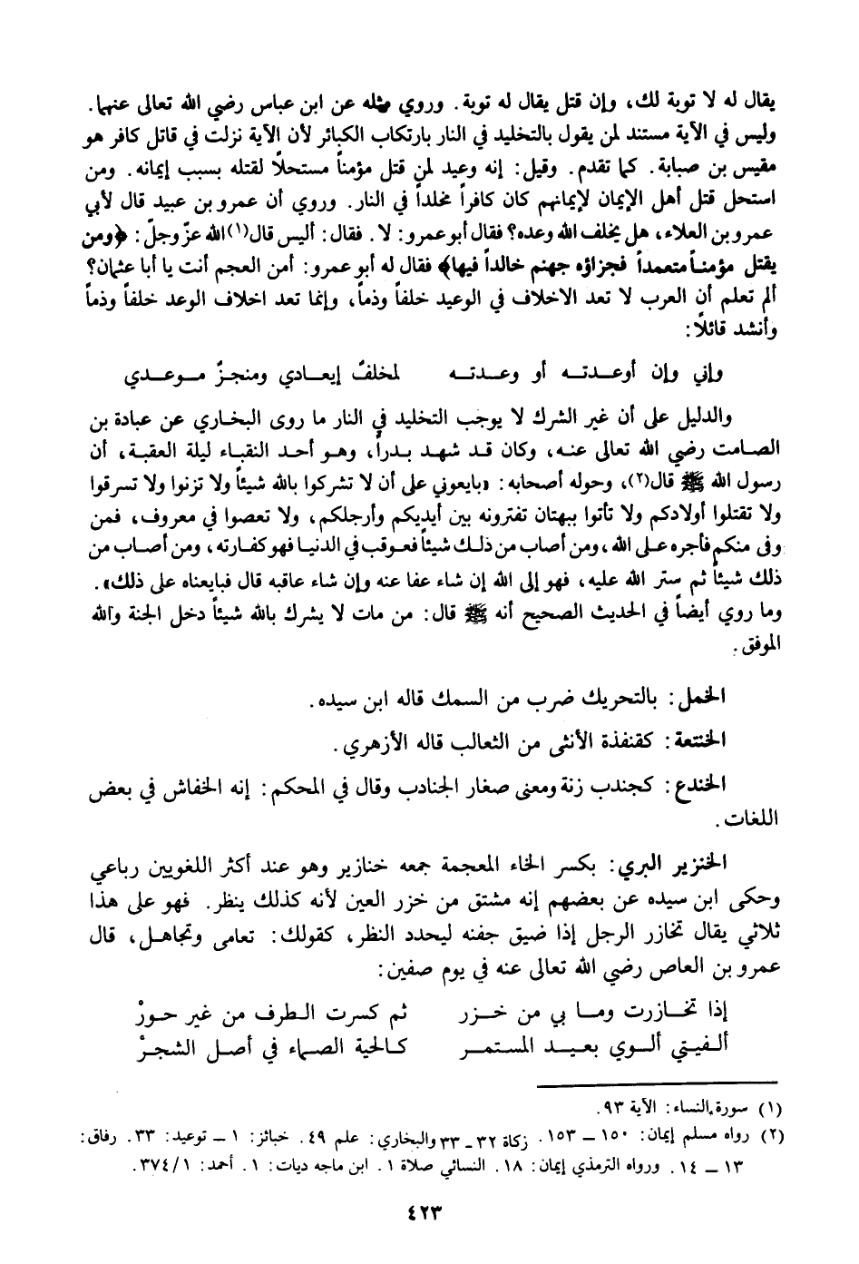 ألم تعلم أن العرب لا تعد الاخلاف في الوعيد خلفا وذما، وإنما تعد اخلاف الوعد خلفا وذما وأنشد قائلا: