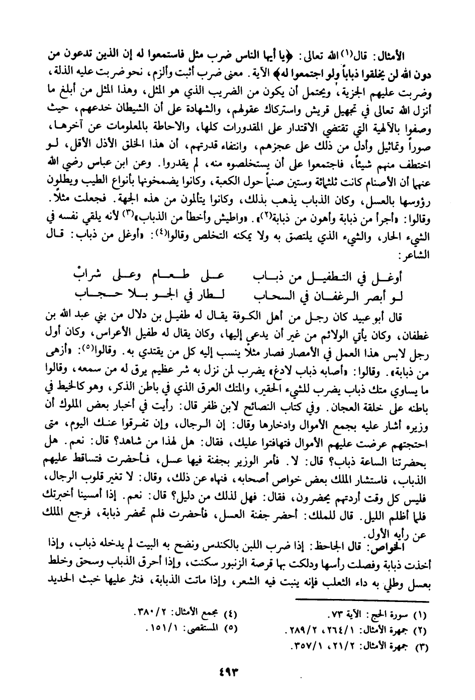 قال «1» الله تعالى: يا أَيُّهَا النَّاسُ ضُرِبَ مَثَلٌ فَاسْتَمِعُوا لَهُ إِنَّ الَّذِينَ تَدْعُونَ مِنْ دُونِ اللَّهِ لَنْ يَخْلُقُوا ذُباباً وَلَوِ اجْتَمَعُوا لَهُ