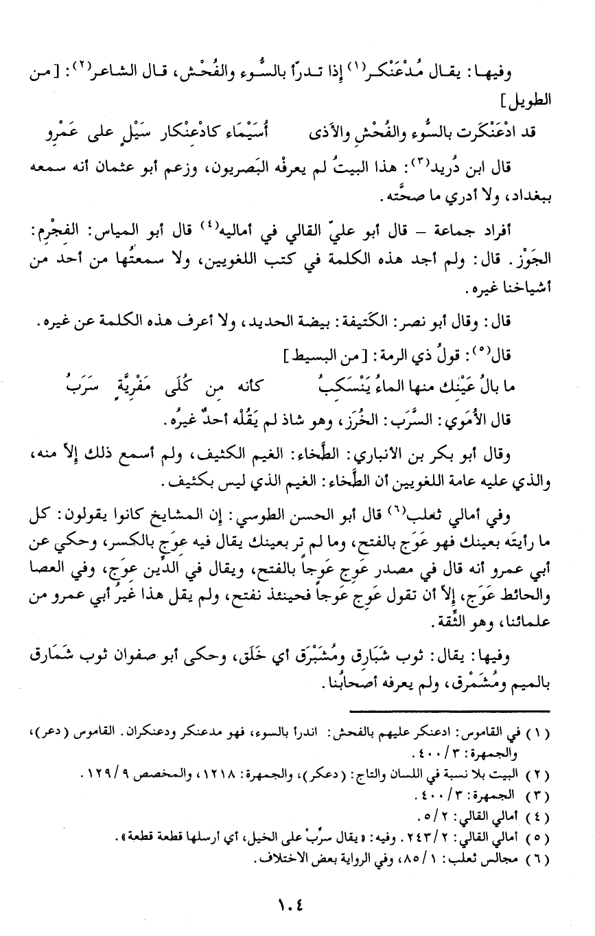 قال ابن دُريد: هذا البيتُ لم يعرفْه البَصريون وزعم أبو عثمان أنه سمعه ببغداد ولا أدري ما صحَّته.