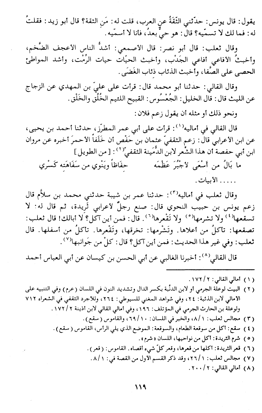 قال القالي: أخبرنا الغالبي عن أبي الحسن بن كيسان عن أبي العباس أحمد
