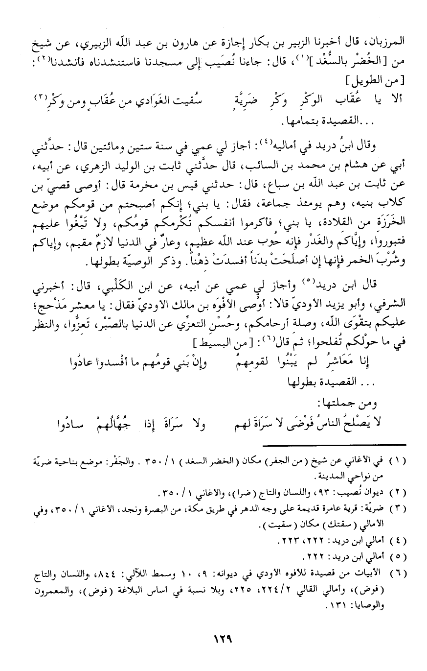 المرزبان قال أخبرنا الزبير بن بكار إجازة عن هارون بن عبد الله الزبيري عن شيخ من (الخُضْر بالسُّغْد) قال: جاءنا نُصَيب إلى مسجدنا فاستنشدناه فأنشدنا: // من الطويل //