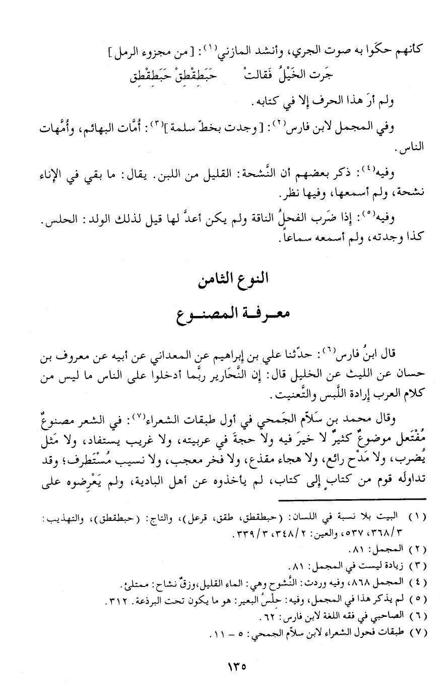 وقال محمد بن سَلاّم الجَمحي في أول طبقات الشعراء: في الشعر مصنوعٌ مُفْتَعل موضوعٌ كثيرٌ لا خيرَ فيه ولا حجةَ في عربيته ولا غريب يستفاد ولا مَثل يُضرب ولا مَدْح رائع ولا هجاء مقذع ولا فخر معجب ولا نسيب مُسْتَطرف وقد تداولَه قوم من كتابٍ إلى كتاب لم يأخذوه عن أهل البادية ولم يَعْرِضوه على
