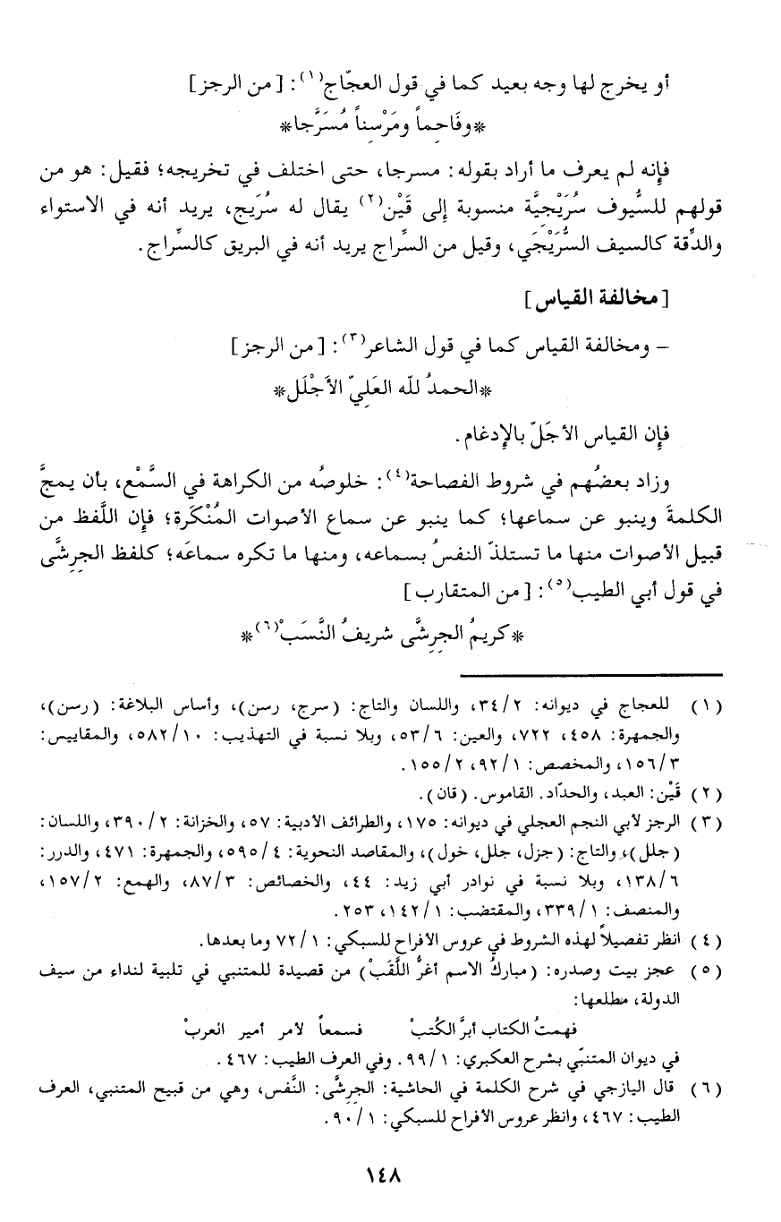 فإنه لم يعرف ما أراد بقوله: مسرجا حتى اختلف في تخريجه فقيل: هو من قولهم للسُّيوف سُرَيْجِيَّة منسوبة إلى قَيْن يقال له سُرَيج يريد أنه في الاستواء والدِّقة كالسيف السُّرَيْجَي وقيل من السراج يريد أنه في البريق كالسراج.