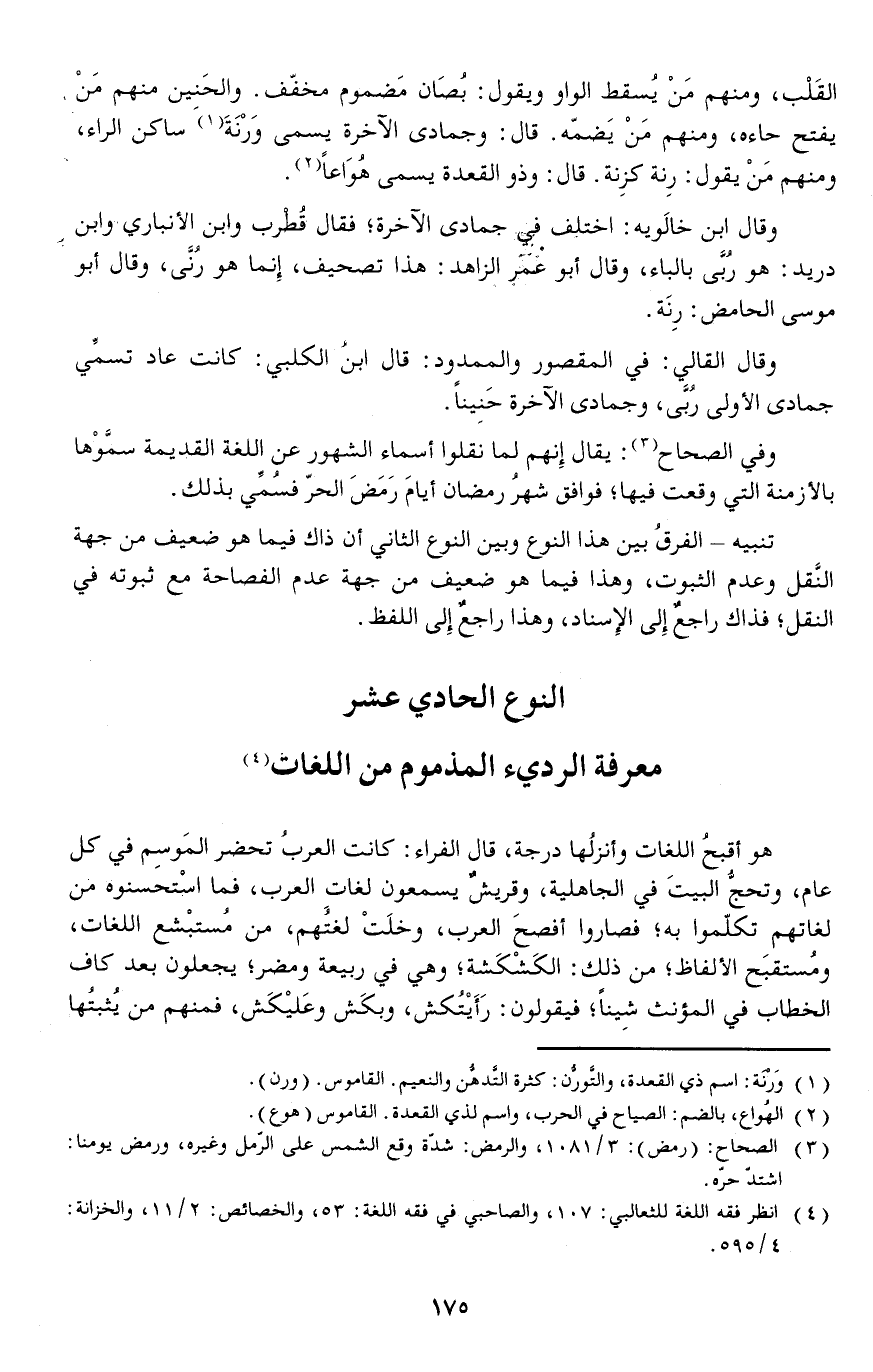 وقال ابن خالَويه: اختلف في جمادى الآخرة فقال قُطْرب وابن الأنباري وابن دريد: هو رُبَّى بالباء وقال أبو عمر الزاهد: هذا تصحيف إنما هو رنى وقال أبو موسى الحامض: رِنَة.