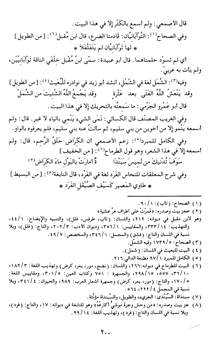 وفيه: الشَّمَل لغة في الشّمْل أنشد أبو زيد في نوادره للبعيث: // من الطويل //