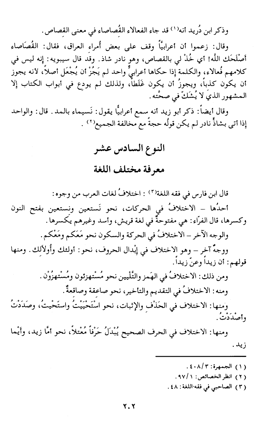 قال ابن فارس في فقه اللغة: اختلافُ لغات العرب من وجوه:
