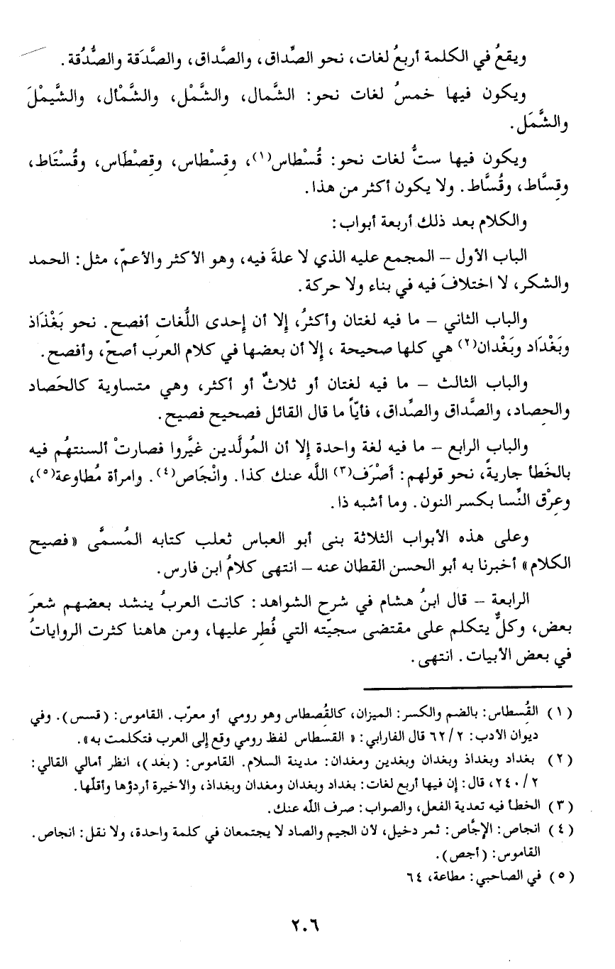 والباب الثالث - ما فيه لغتان أو ثلاثٌ أو أكثر وهي متساوية كالحَصاد والحِصاد والصَّداق والصِّداق فأيا ما قال القائل فصيح.