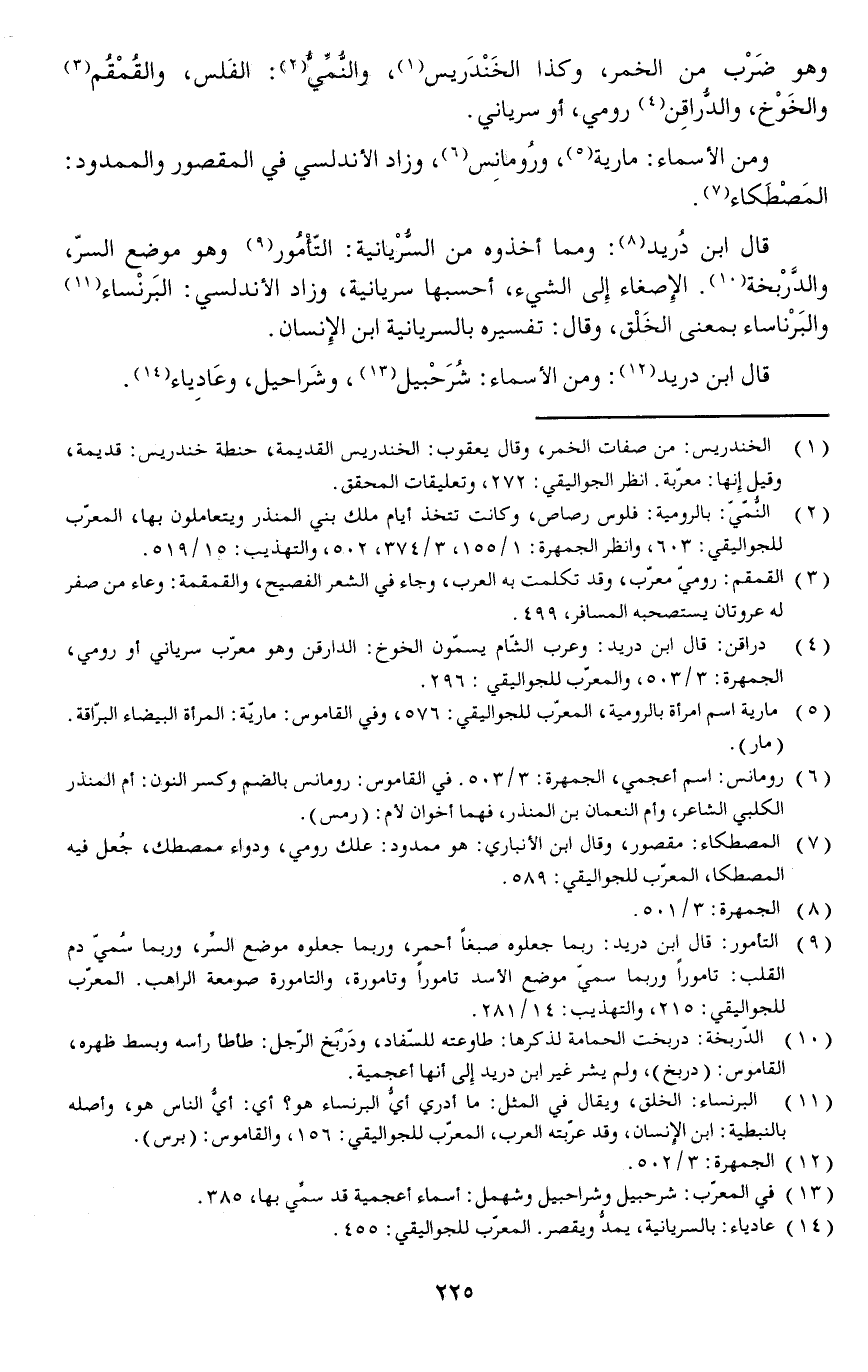 وهو ضَرْب من الخمر وكذا الخَنْدَريس والنُّمِّيُّ: الفَلس والقُمْقُم والخَوْخ والدُّراقِن رومي أو سرياني.