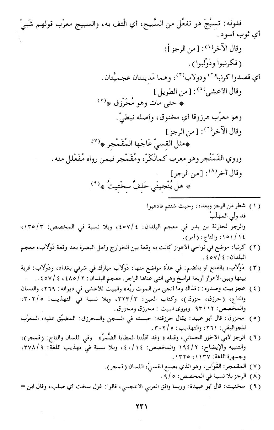 فقوله: تسبَّجَ هو تفعَّل من السَّبيج أي الْتف به والسبيج معرب قولهم شَبيّ أي ثوب أسود.
