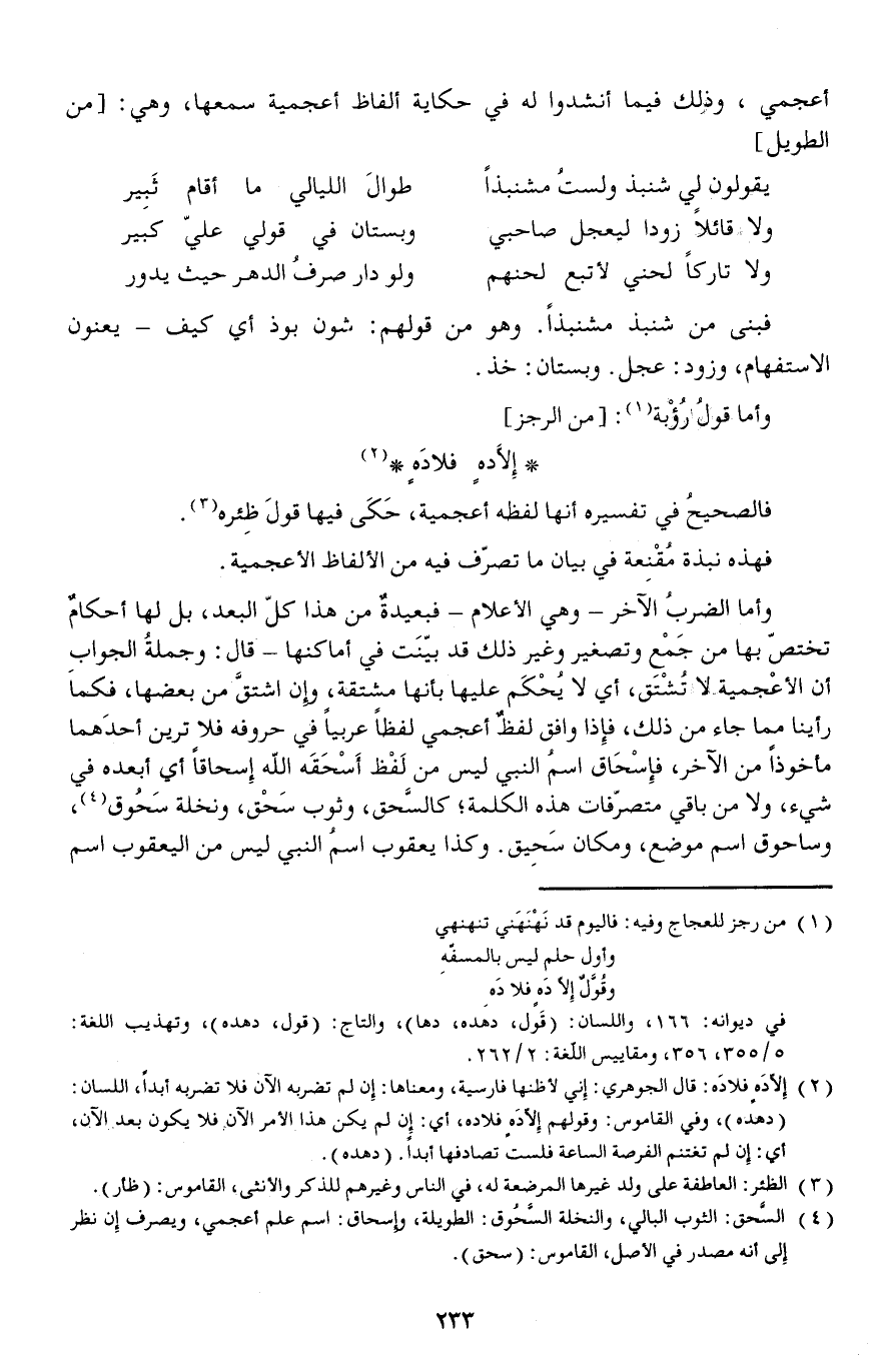 أعجمي وذلك فيما أنشدوا له في حكاية ألفاظ أعجمية سمعها وهي: // من الطويل //