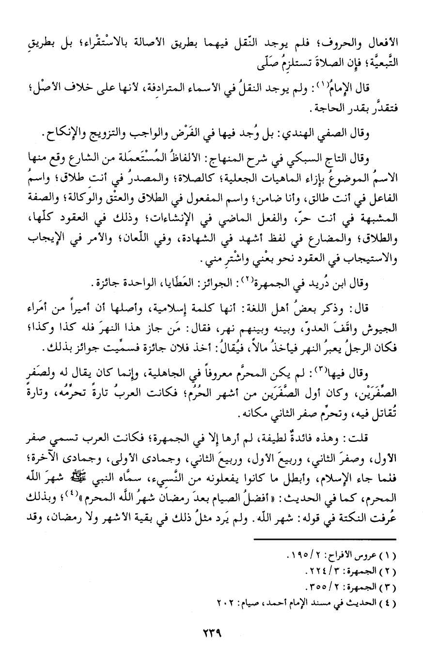 وقال فيها: لم يكن المحرَّم معروفا في الجاهلية وإنما كان يقال له ولصَفر الصِّفَرَيْن وكان أول الصفرين من أشهر الحرمفكانت العربُ تارة تحرِّمُه وتارة تُقاتل فيه وتحرِّم صفر الثاني مكانه.