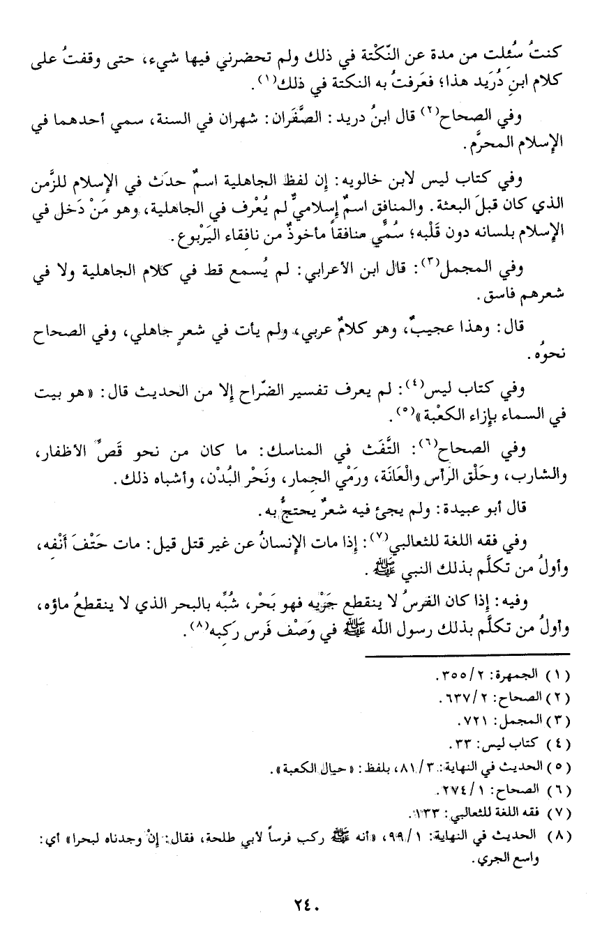 وفي الصحاح قال ابنُ دريد: الصَّفَران: شهران في السنة سمي أحدهما في الإسلام المحرَّم.