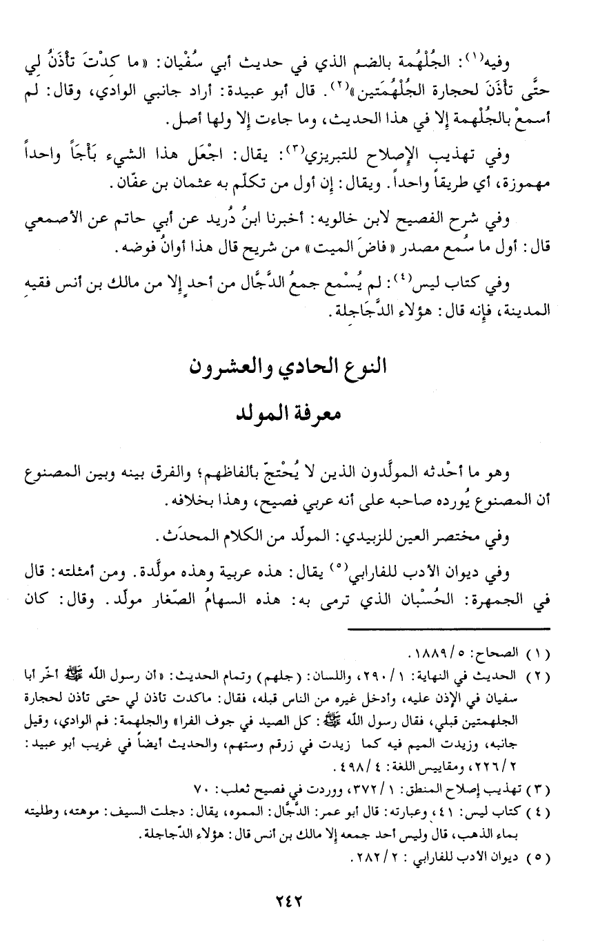 ومن أمثلته: قال في الجمهرة: الحُسْبان الذي ترمى به هذه السهامُ الصغار مولد.