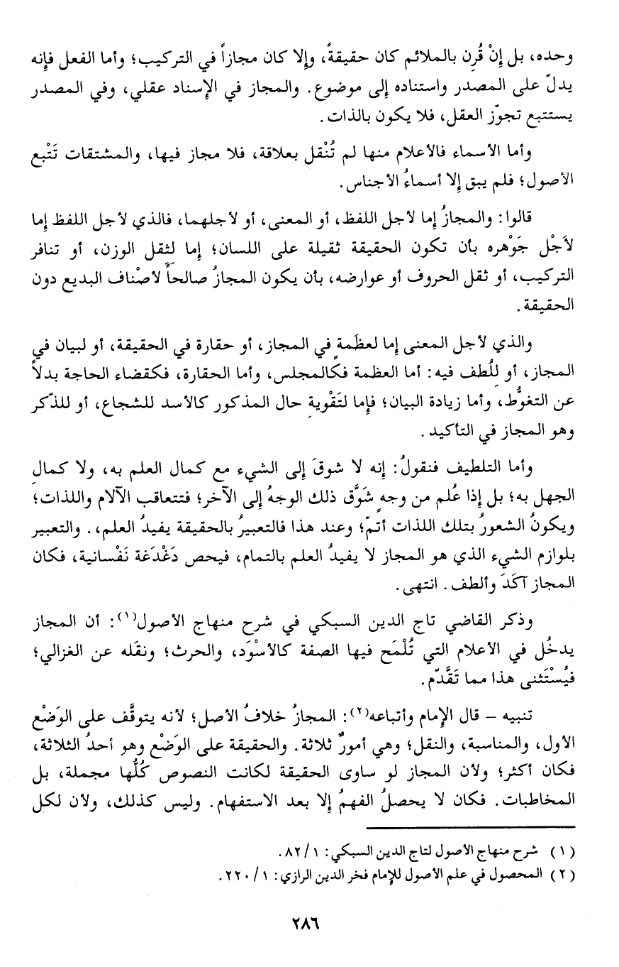 تنبيه - قال الإمام وأتباعه: المجاز خلاف الأصللأنه يتوقف على الوضع لأول والمناسبة والنقلوهي أمورٌ ثلاثة.