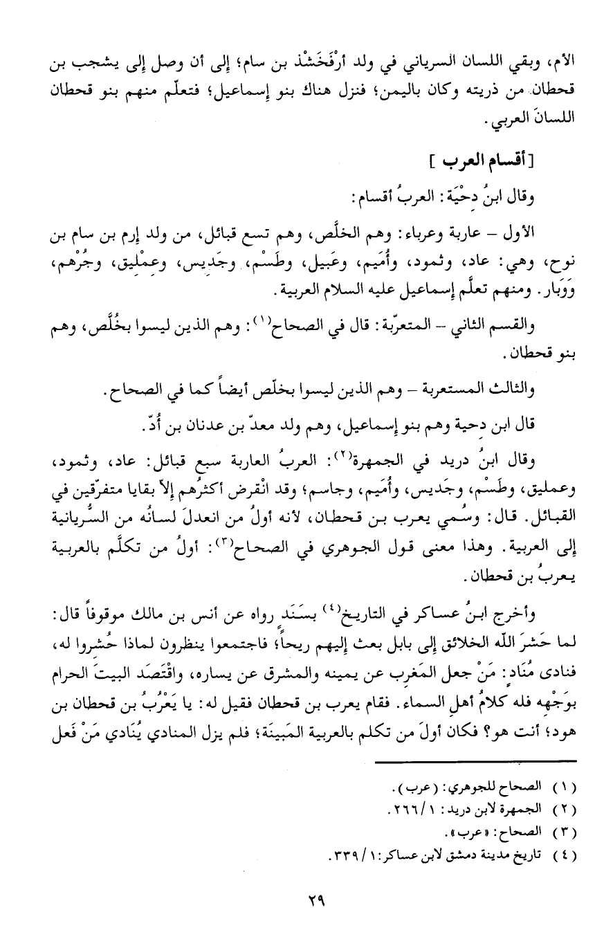 وهذا معنى قول الجوهري في الصحاح: أولُ من تكلَّم بالعربية يعربُ بن قحطان.