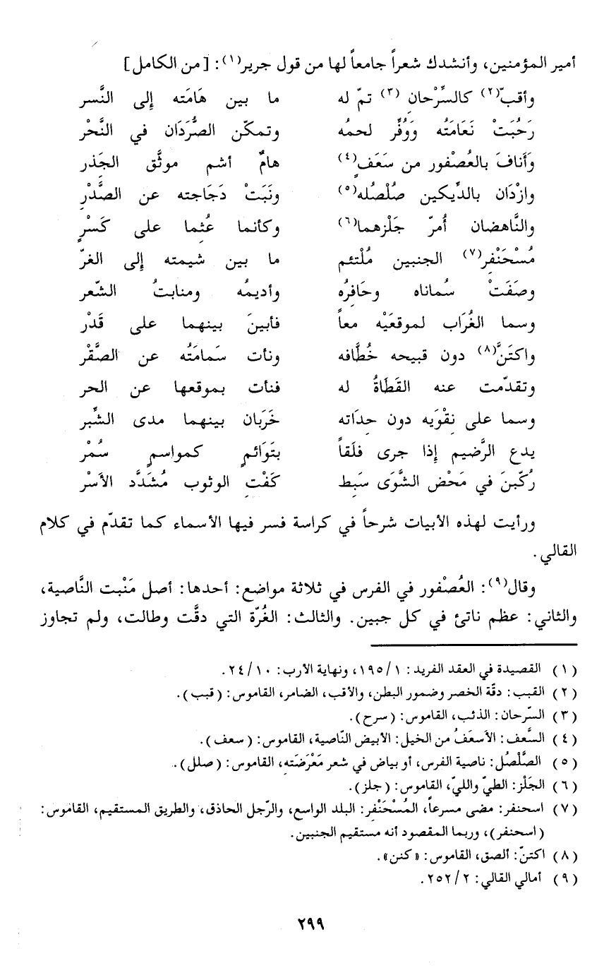 أمير المؤمنين وأنشدك شعرا جامعا لها من قول جرير: // من الكامل //