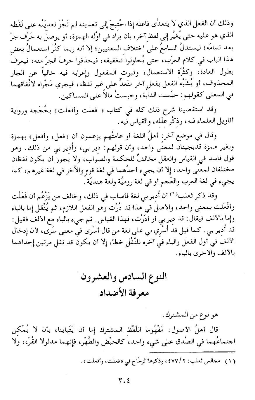 وقال في موضوع آخر: أهلُ اللغة أو عامتُهم يزعمون أن (فعل وأفعل) بهمزة وبغير همزة قد يجيئان لمعنى واحد وأن قولهم: دِير بي وأُدِير بي من ذلك.