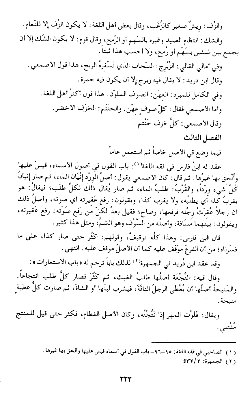 قال ابن فارس: وهذا كلُّه توقيفٌ قولهم: كثر حتى صار كذاعلى ما فسرناهمن أن الفرعَ موَقّف عليه كما أن الأصلَ موقف عليه.