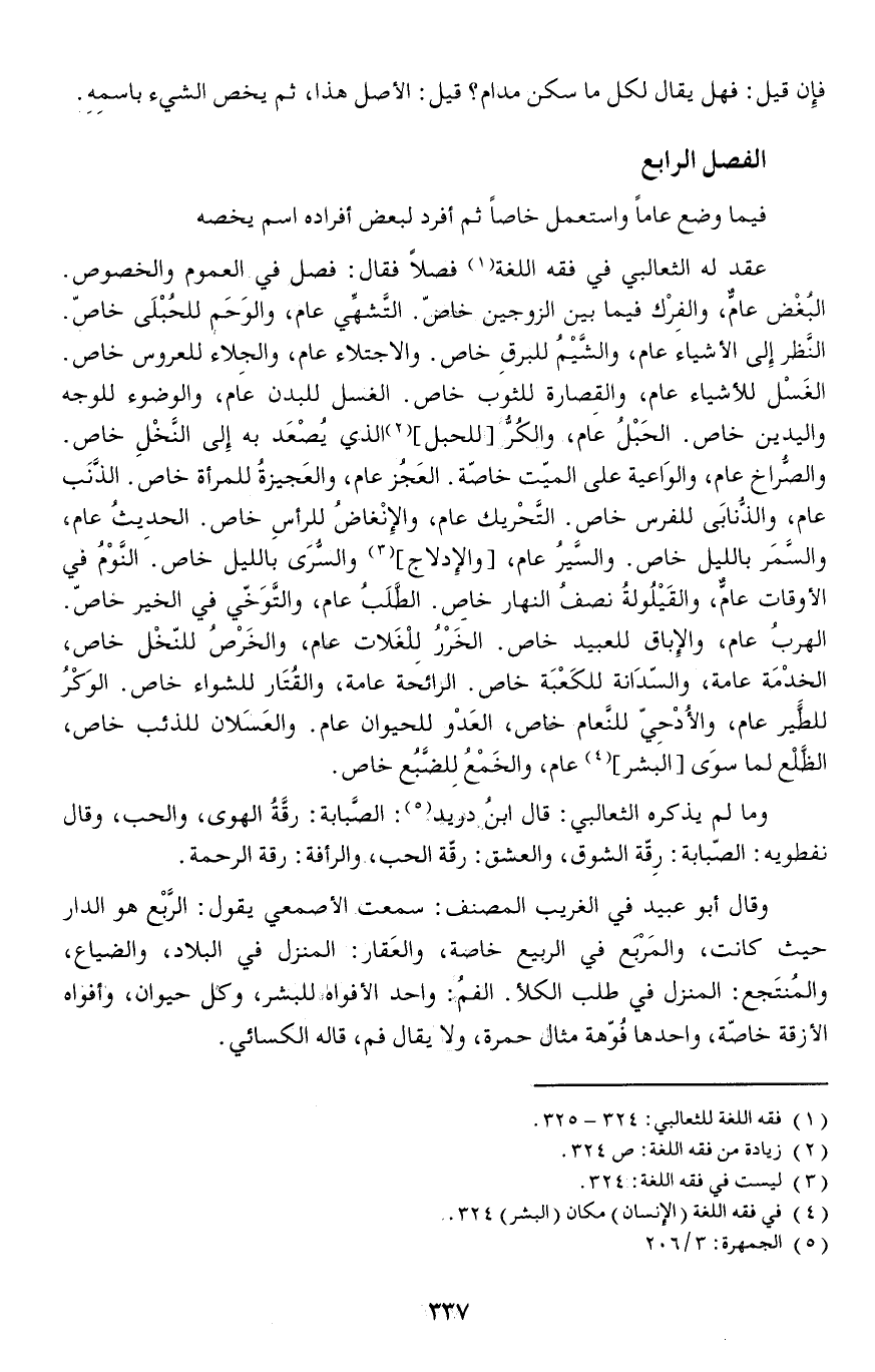 عقد له الثعالبي في فقه اللغة فصلا فقال: فصل في العموم والخصوص.
