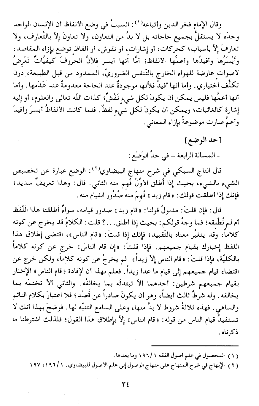 - المسألة الرابعة - في حدِّ الوَضْع: