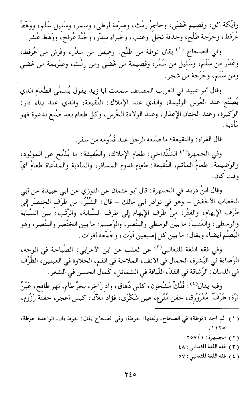وفي فقه اللغة للثعالبي عن ثعلب عن ابن الأعرابي: الصَّباحة في الوجه الوَضاءة في البَشرة الجمال في الأنف الملاحة في الفم الحلاوة في العينين الظَّرْف في اللسان: الرشاقة في القد اللباقة في الشمائل كَمال الحسن في الشعر.