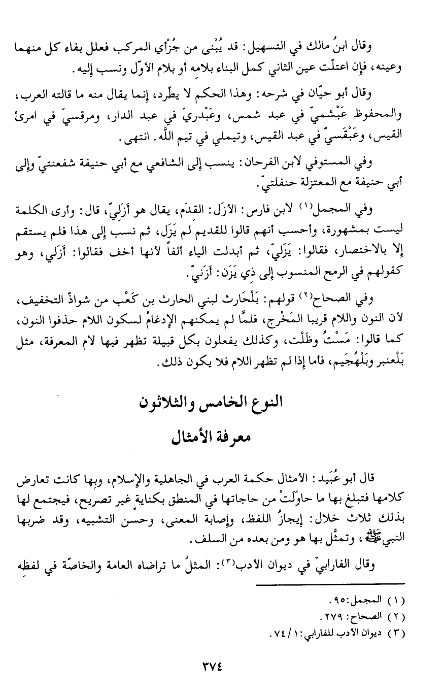 وقال الفارابي في ديوان الأدب: المثلُ ما تراضاه العامة والخاصة في لفظِه