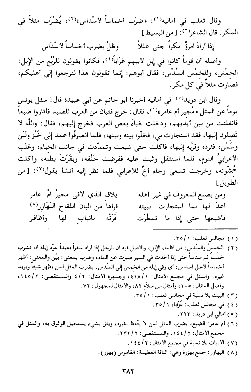 وقال ثعلب في أماليه: (ضرَب أخماسا لأسْداس) يضرب مثلا في المكر.