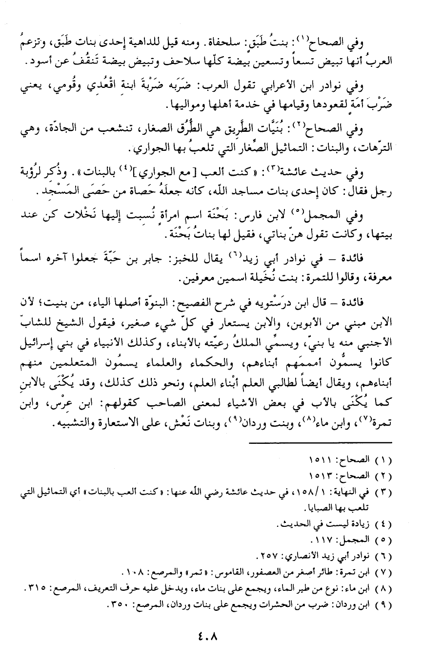 وفي الصحاح: بُنَيَّات الطَّرِيق هي الطُّرُق الصغار تنشعب من الجادة وهي الترهات والبنات: التماثيل الصِّغار التي تلعبُ بها الجواري.