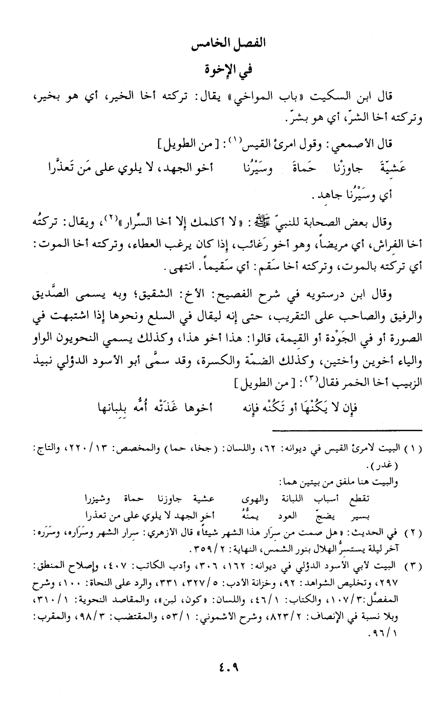 قال ابن السكيت (باب المواخي) يقال: تركته أخا الخير أي هو بخير وتركته أخا الشر أي هو بشر.