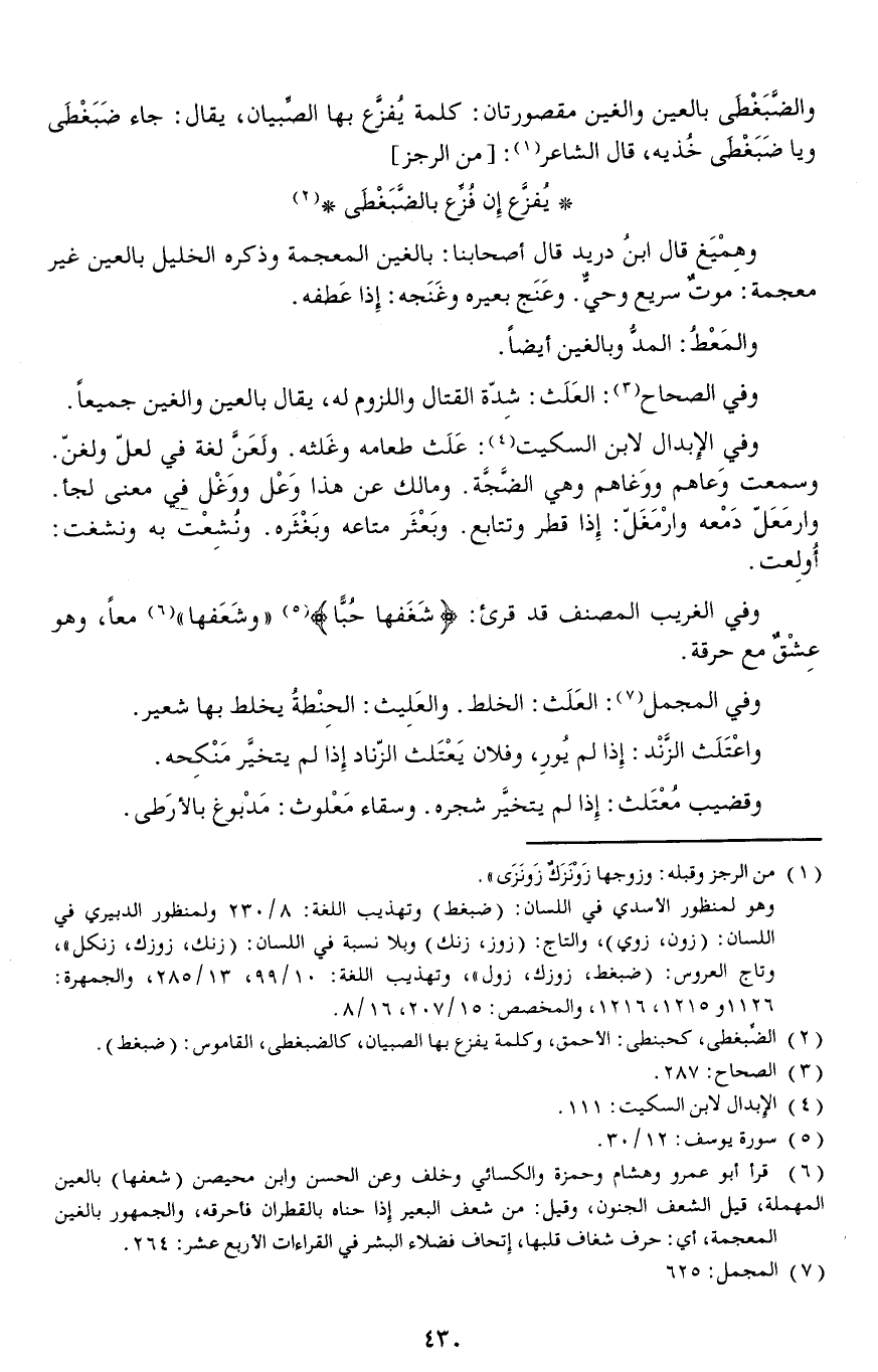 والظبغطي بالعين والغين مقصورتان: كلمة يُفزَّع بها الصِّبيان يقال: جاء ضَبَغْطَى ويا ضَبَغْطَى خُذيه قال الشاعر: // من الرجز //